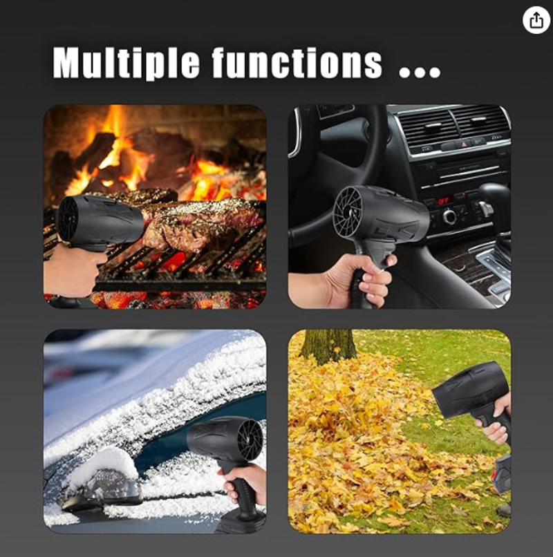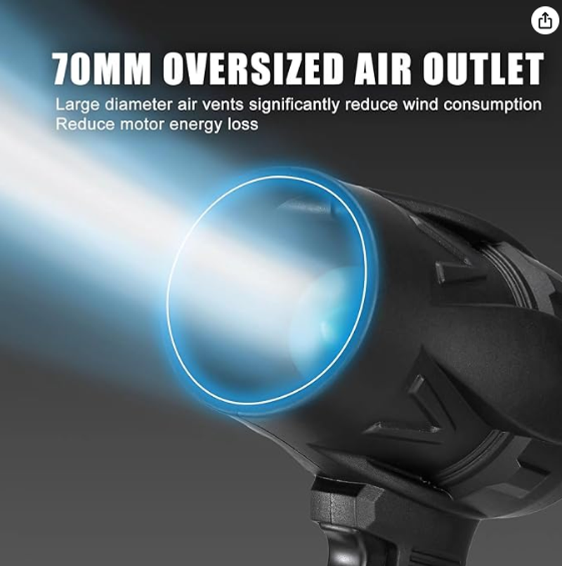 【Made for Versatility】The turbo dryer blower for car is designed for multiple functions, making it an ideal cleaning tool for computer keyboards, outdoor activities like camping and BBQs, and car interiors.Continuously variable speed switch -Wind speed can be controlled accordingto one's heart,with switch control of shaftspeed and air output volume, allowing you to customize its power to suit your cleaning needs.