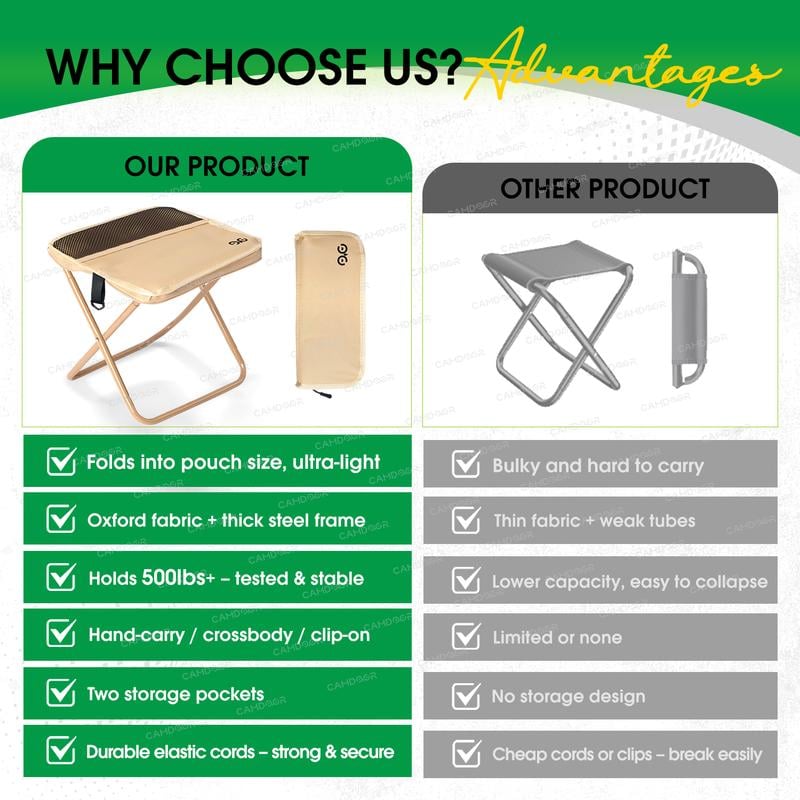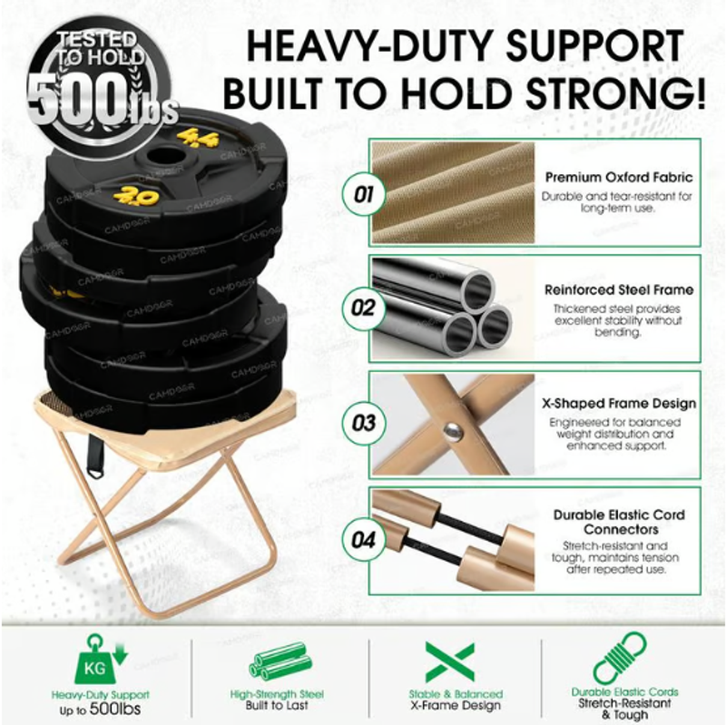 This upgraded Strap Folding Stool is your ideal companion for any outdoor adventure, combining portability, durability, and practicality for a comfortable and convenient experience.
