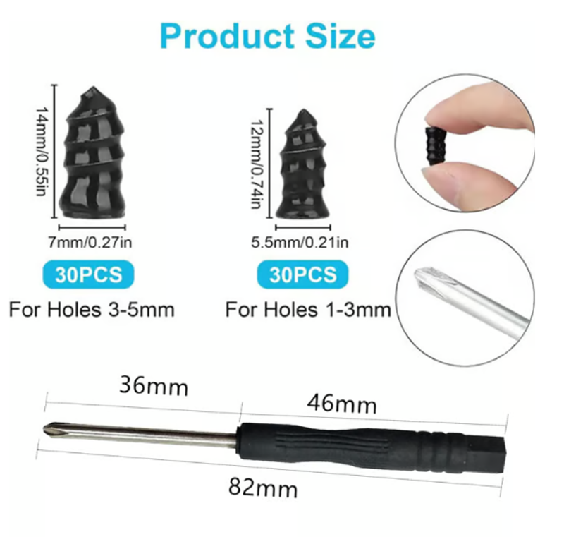 - High Quality: Our self-service tire repair screws are made of premium rubber materials, No aging and can withstand high temperature, Can firmly fix your tires without damaging them.