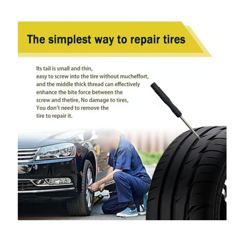 ✅The simplest way to repair tires,Its tail is small and thin, easy to screw into the tire without much effort, and the middle thick thread can effectively enhance the bite force between the screw and the tire, No damage to tires, You don't need to remove the tire to repair it.