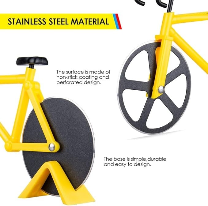 - Our bike pizza slicer is made from non-stick materials which makes it free from sticky crust or dough after using.