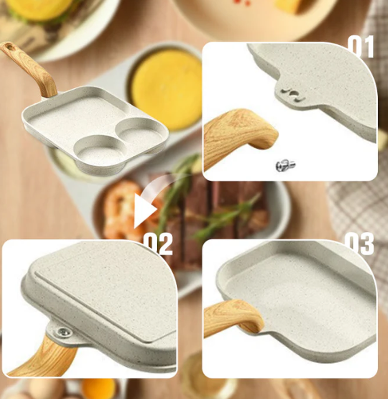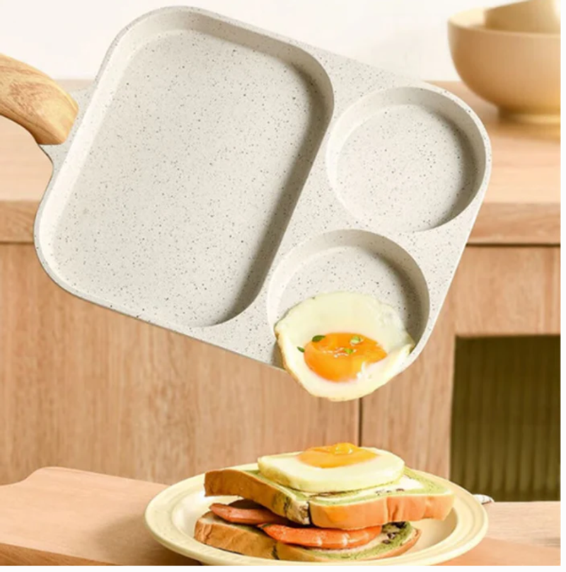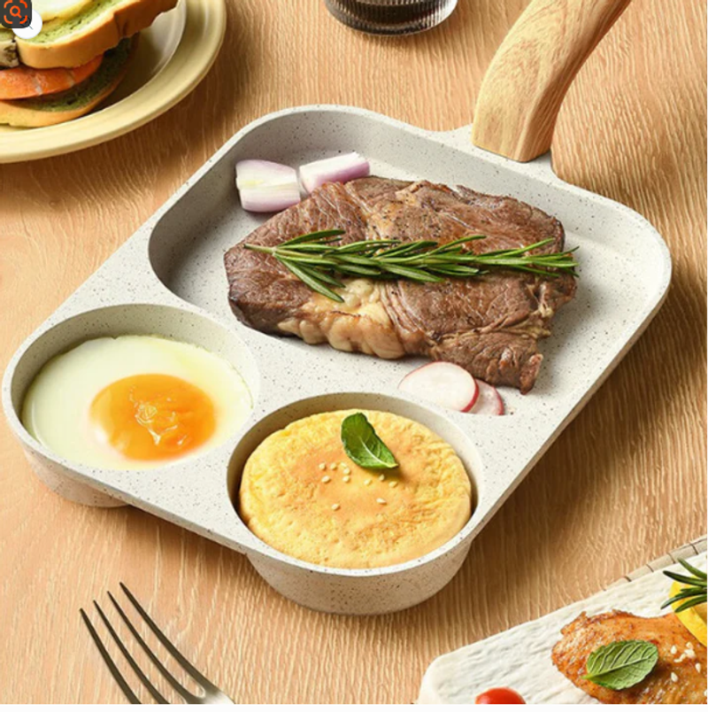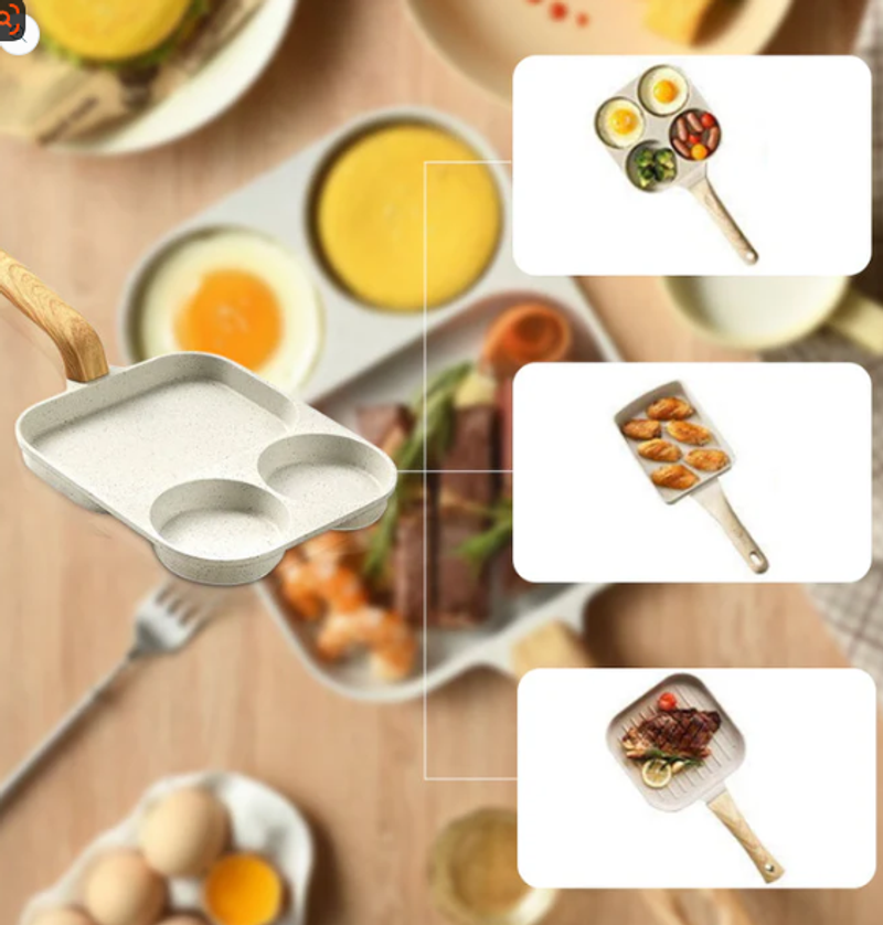 THREE COMPARTMENTS FOR EFFICIENT COOKING -Cook multiple dishes simultaneously with the divided design, allowing you to prepare eggs, pancakes, meats, and veggies all in one pan without mixing flavors.