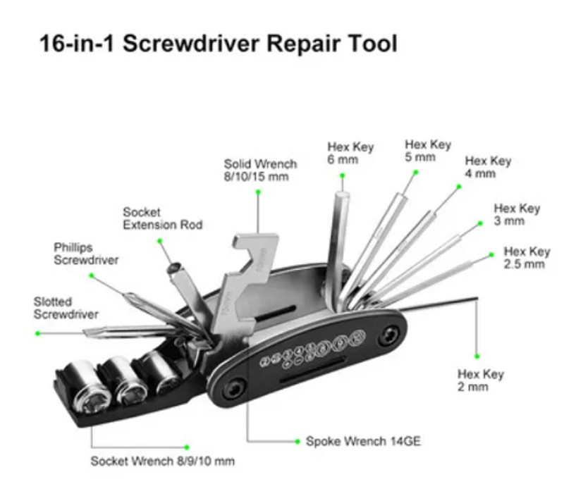 16-in-1 Multi-Functional Repair Kit Carbon Steel Folding Repair Wrench and Screwdriver