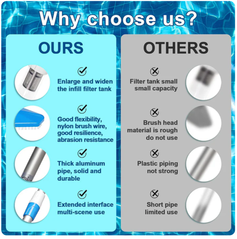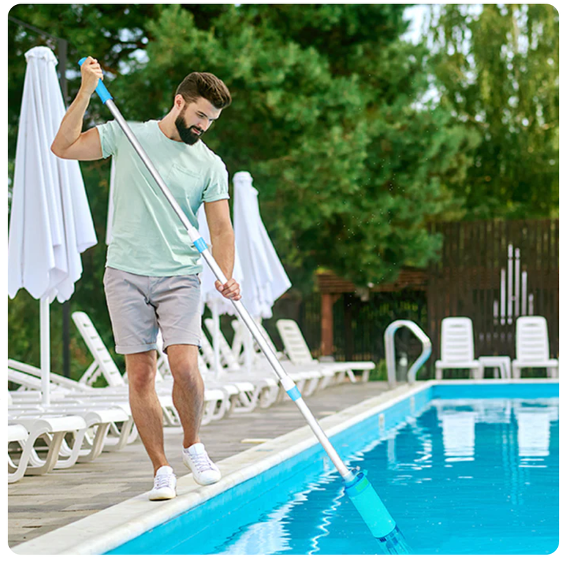 iToolMax 3 in 1 Cordless Pool Vacuum, scrubs, and filters with powerful suction in one, quick cleaning without bending over, thoroughly clean all dirt from your pool. Enjoy in crystal-clear water pool more time instead of hard cleaning.