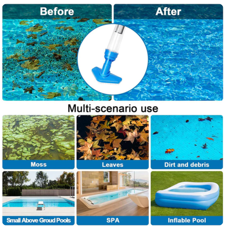 It can easily pick up most debris like leaves, dirt, sand, insects, etc. in above-ground pools, in-ground pools, hot tubs and spas.