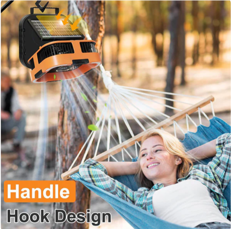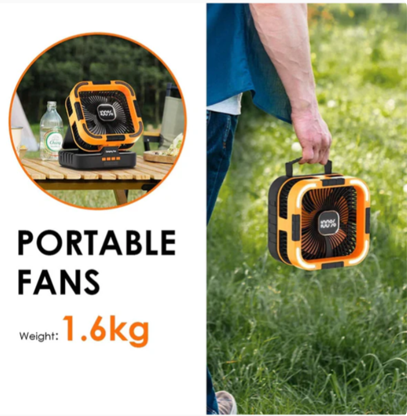 Perfect for camping, hiking, fishing, backyard gatherings, power outages, or even working in the garage and indoor use. With its fan, light, and power bank in one compact design, it’s your go-to companion for indoor and outdoor comfort anytime, anywhere.