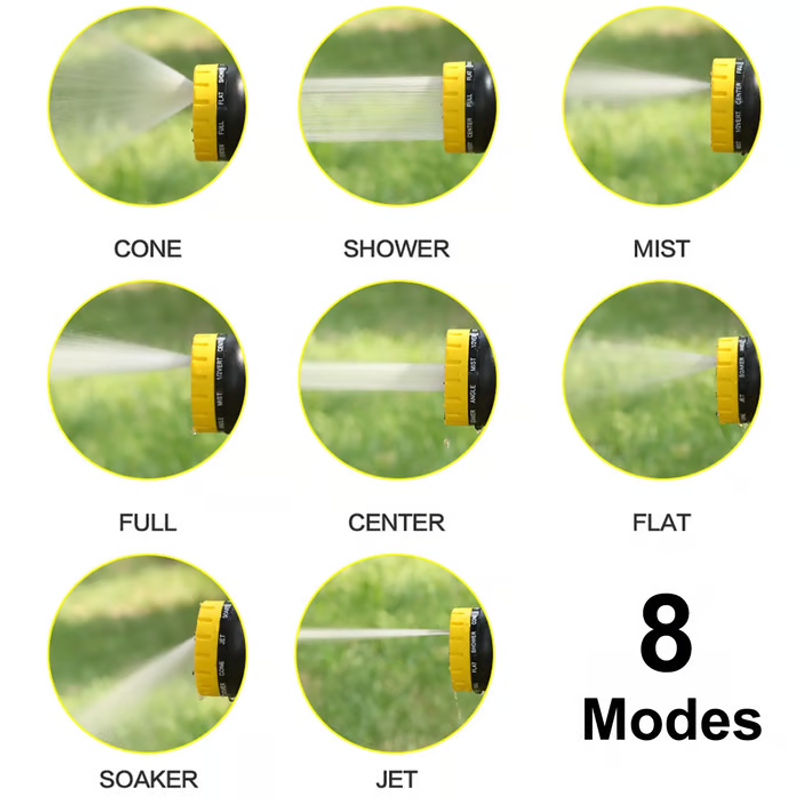 8 different spray patterns: Choose from Spray Head, Center, Flat, Stream, Rinse, Cone, Mist, Shower spray patterns to suit any and all of your watering needs. Adjustable settings provide a variety of water pressures, ideal for everything from pet cleaning to spraying delicate flowers in the garden.