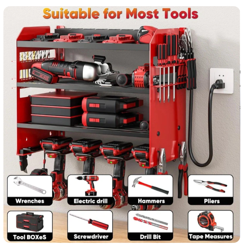 Say goodbye to cluttered tool rooms and use the itoolmax power tool organizer to save space and quickly find the tools you need! Each shelf can hold up to 33 pounds (14 kilograms), making it easy to store power tools, drill bits, screwdrivers, pliers, tool batteries, and more. It's the perfect solution for organizing and storing your repair tools.