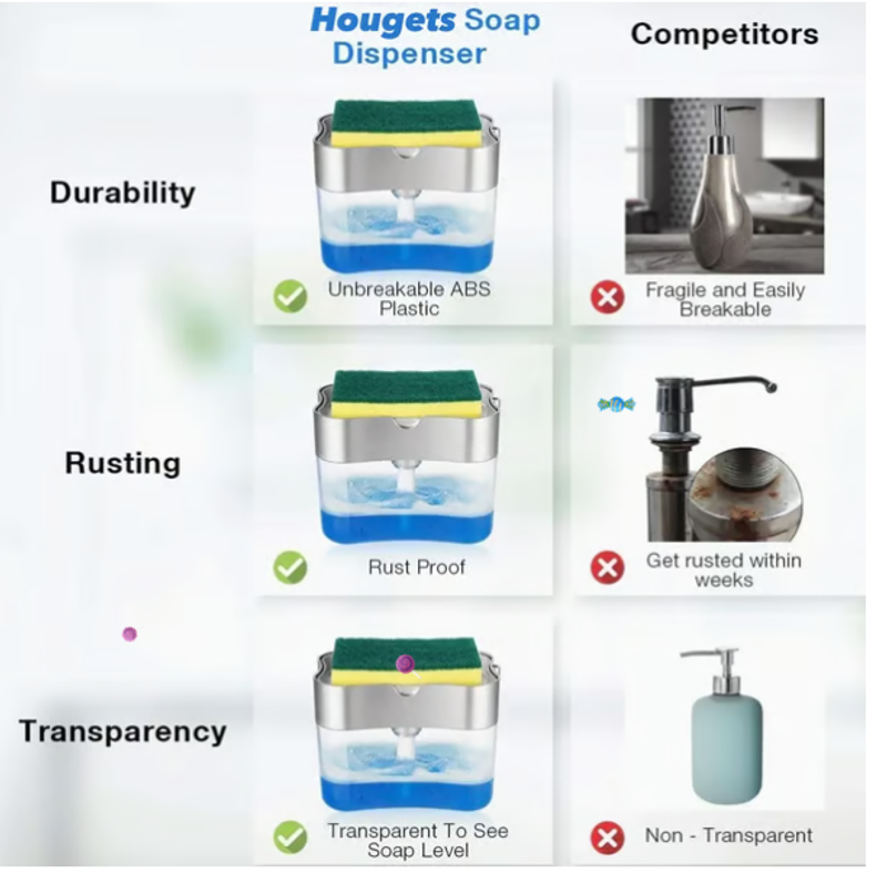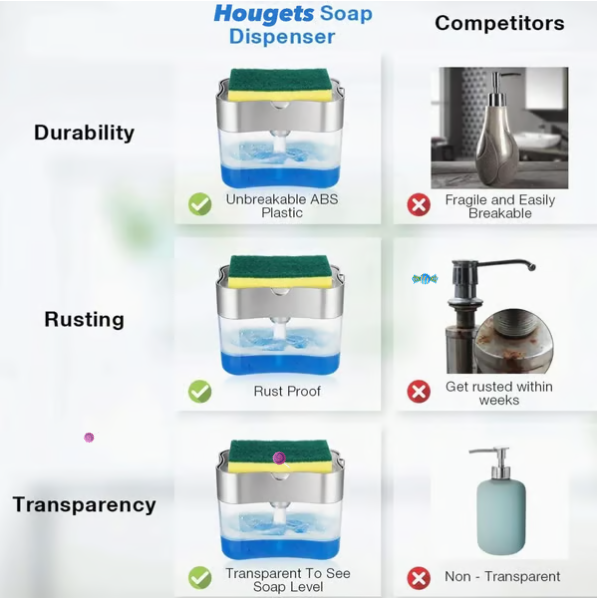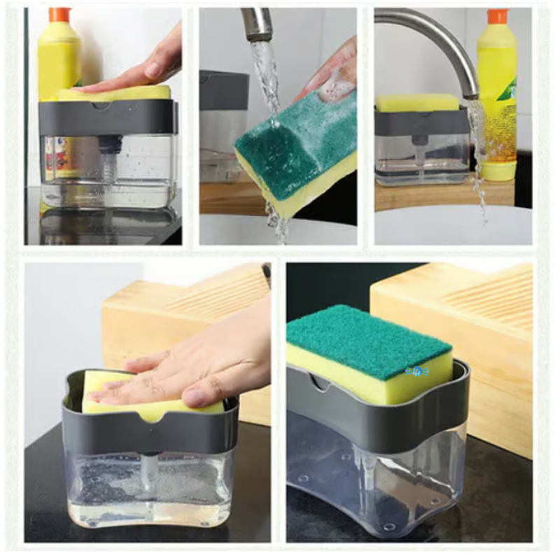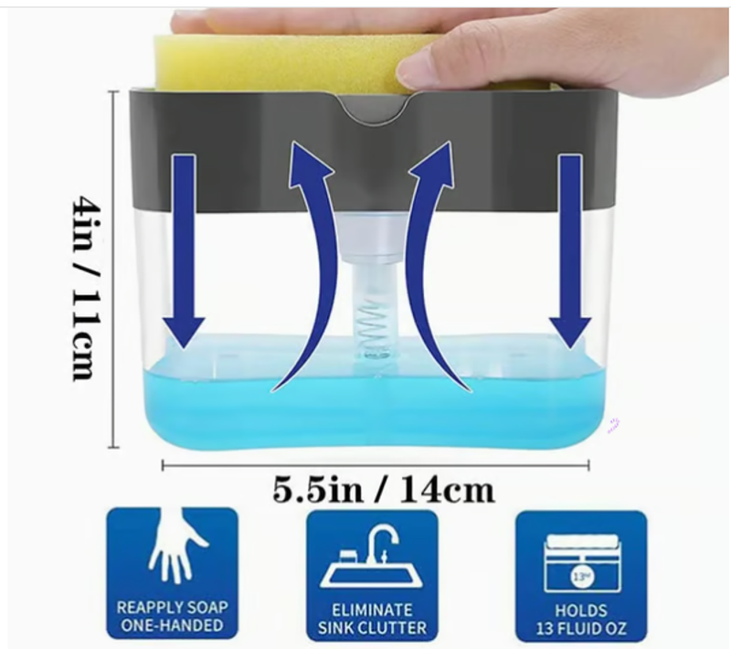 Dispense soap in seconds with one hand: The pump design is so clever! Press the sponge, and the dishwashing liquid automatically dispenses. No need to free your hands to pour liquid, washing pots and dishes is twice as fast!