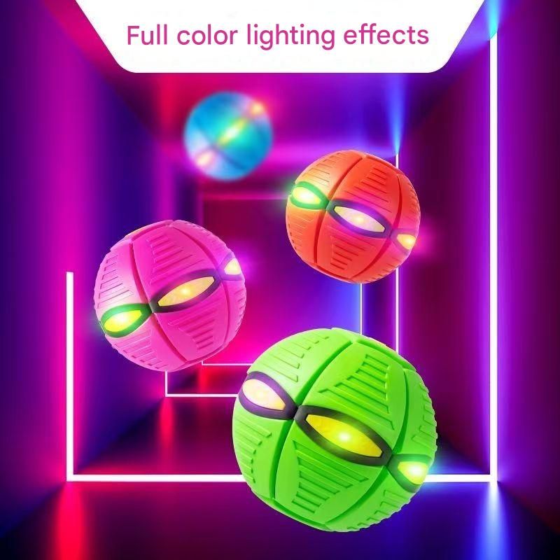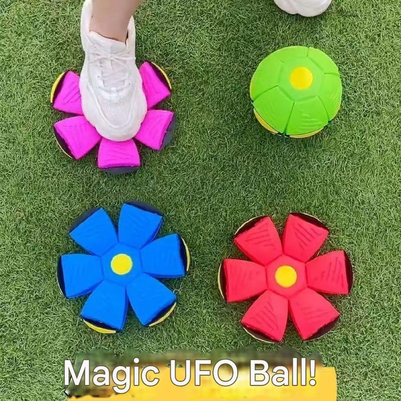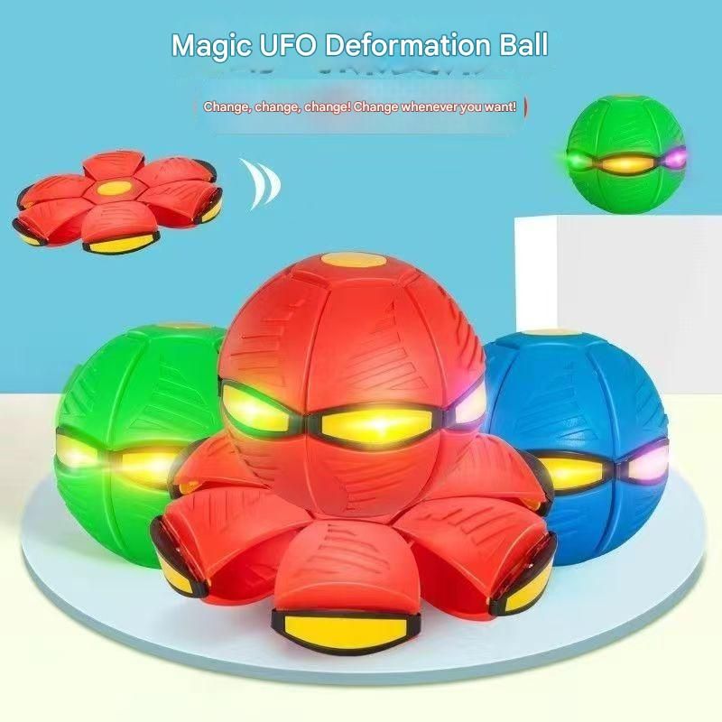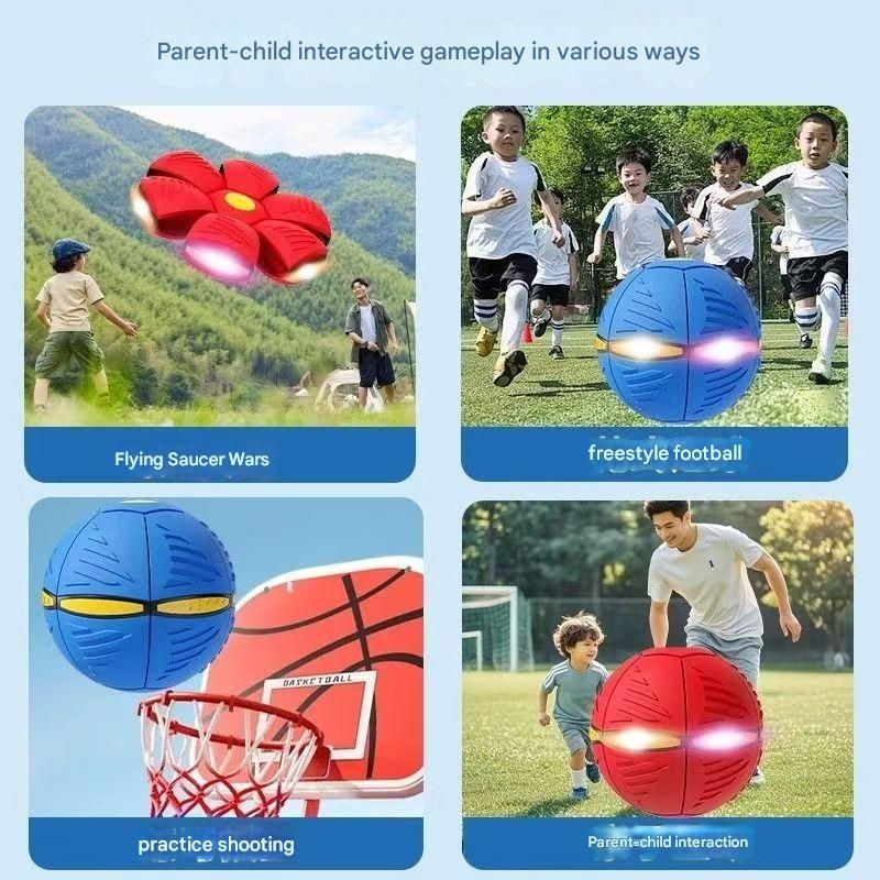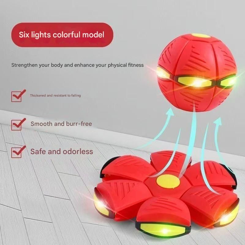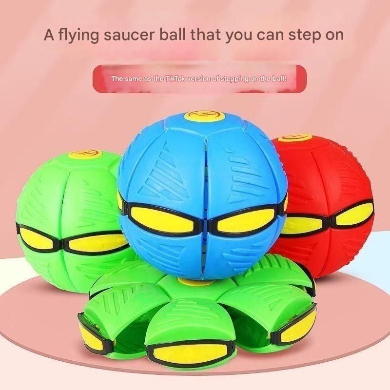 Freely switched from ball to flying saucer. Can be used as a soccer ball, bowling ball, frisbee & more.