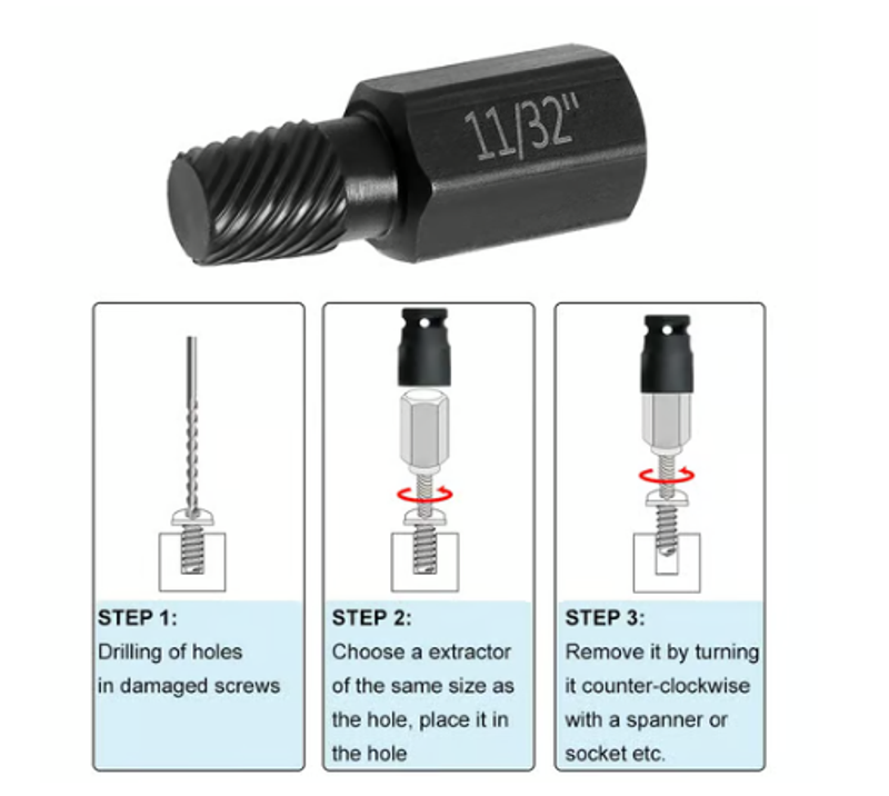 Each tool is clearly marked with its corresponding size for effortless identification and selection. It is designed to be compatible with screws and bolts of any size, offering multiple options to meet most of your extraction needs.