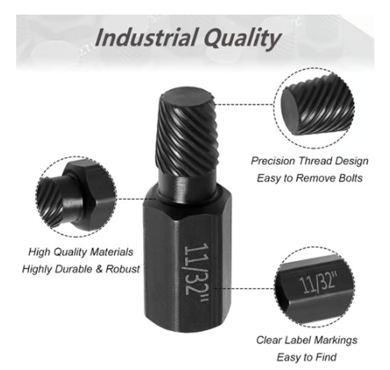 Crafted from heat-treated and premium Chrome Vanadium Steel, these extractors are highly resistant to wear, corrosion, and deformation. Each tool undergoes precision machining and exhibits exceptional hardness for prolonged durability.