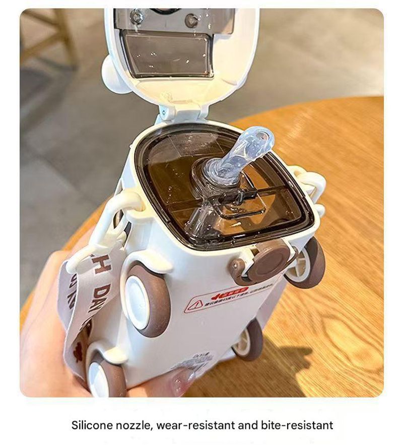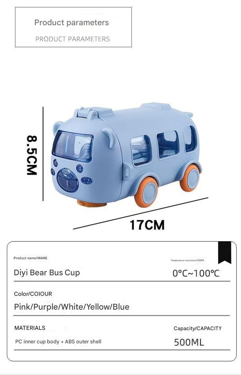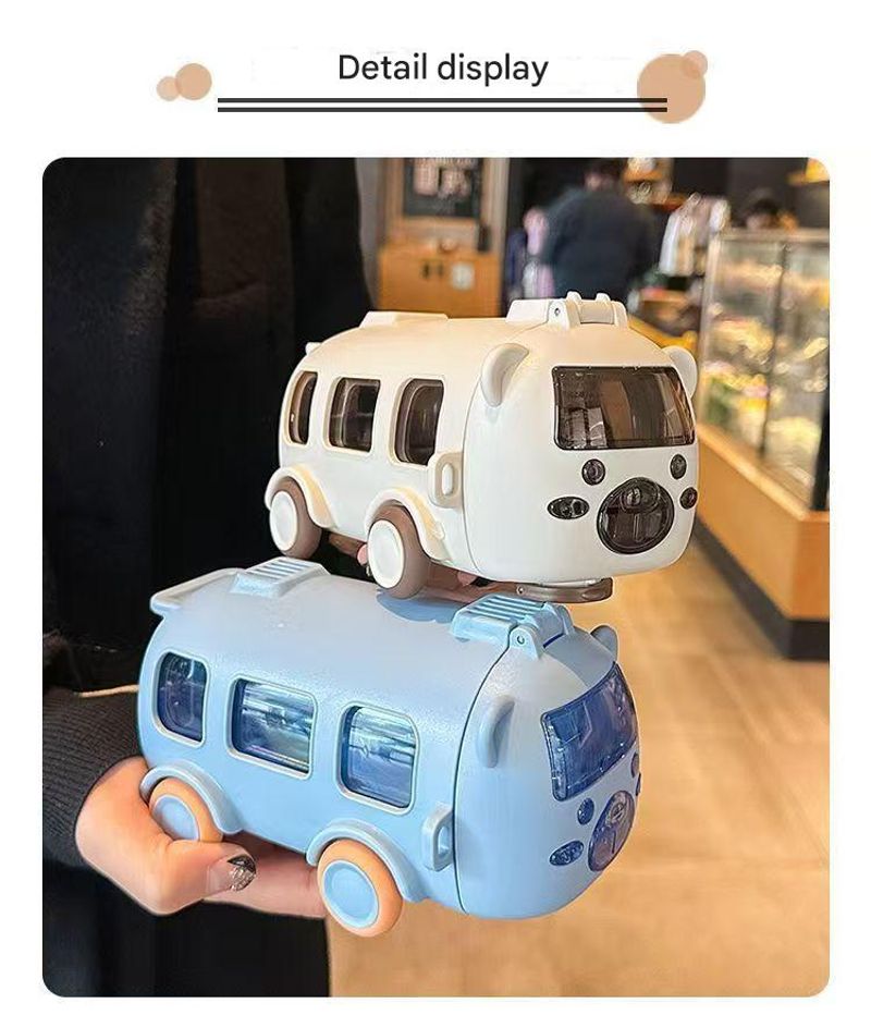 The water bottle is shaped like a cute bear bus in an eye-catching macaron color. It's like a toy toy that makes kids excited. It used to take an hour to chase me for water, but now my baby drinks tons of it on his own, so I can finally breathe a sigh of relief.