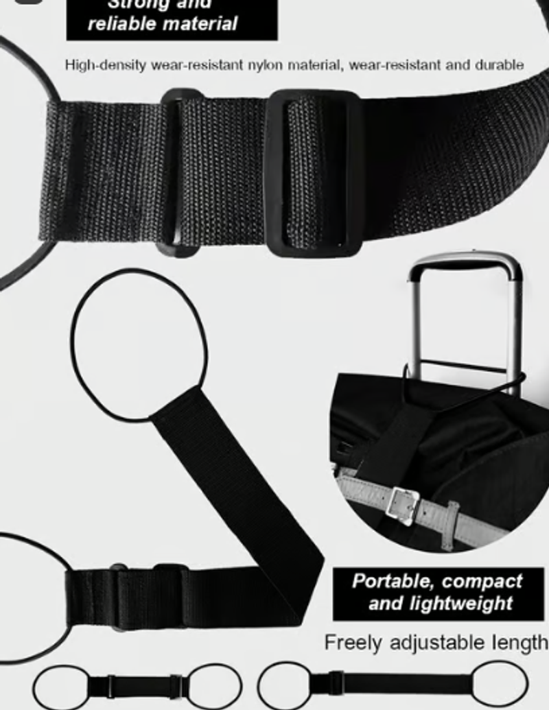 Uses: Easily secure your luggage to a travel bag or carry bag. Fits most travel carry with a sliding handle Useful when carrying caster bags during business trips, domestic travel, overseas travel, train, airplanes, and travel