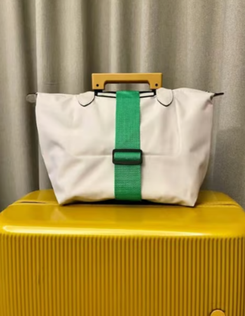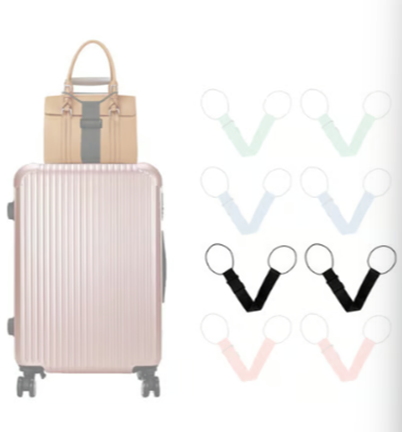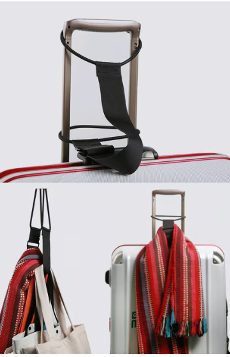 How to Use: Use as a travel bag with a sliding handle; Attach the rubber on one side to the slide handle, place the luggage on the belt, and hang the other rubber on the handle; You can hang the rubber on both handles and hang a stole or mini bag on the belt. When not in use, it can be stored compactly, so it is recommended for travel companion