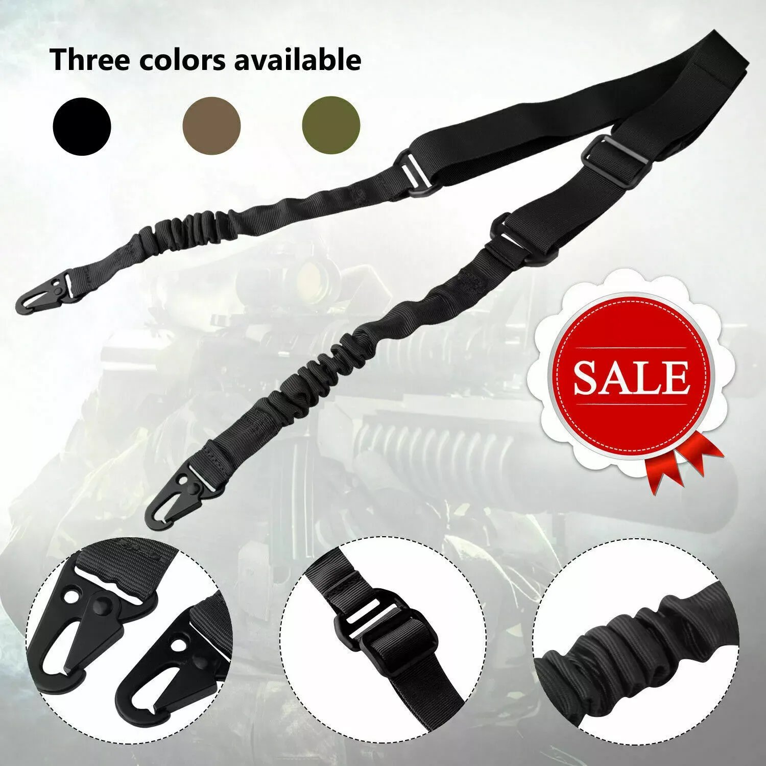 This two-point sling is made of high-density nylon material with high elastic rope, which effectively buffers and absorbs impact. The high-strength steel ring ensures maximum durability under heavy-load use. The sling ring will not be deformed or broken due to excessive weight.