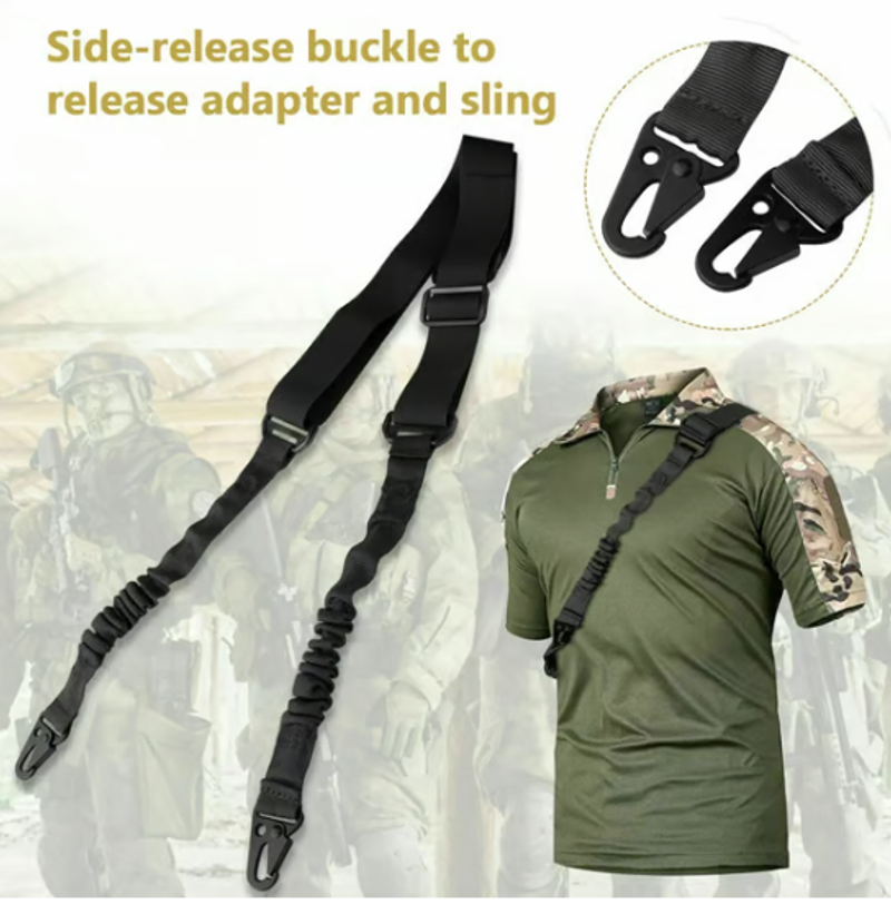 The upgraded metal hook makes the sling fit the rifle perfectly. The heavy-duty button-type outer diameter sling ring seat is easy to remove and install.The tactical single-point design ensures quick transitions between various carry positions, optimizing speed and efficiency in shooting scenarios.