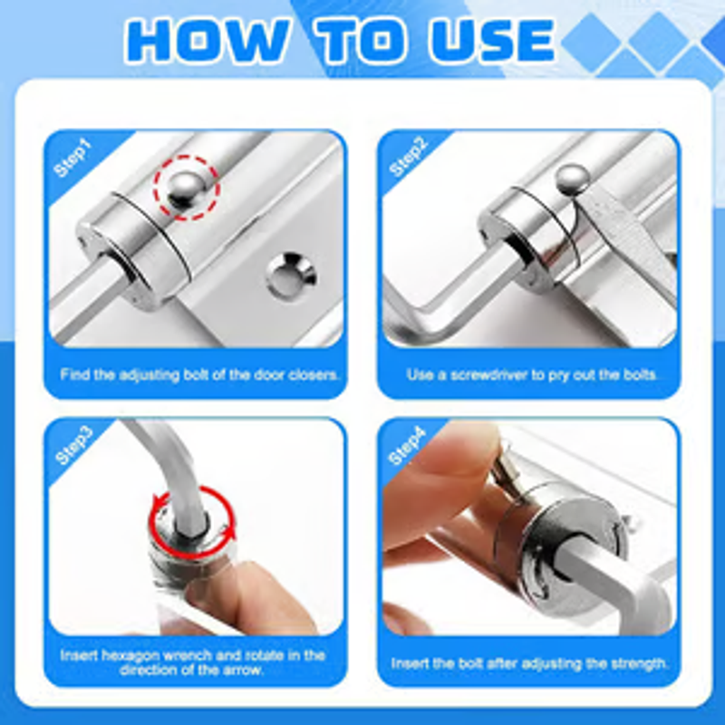 ✨Easy to Install: Just adjust the closing force first, and then install the automatic door closer between the door frame and screws. The entire installation process is simple and fast, no professional help is required!