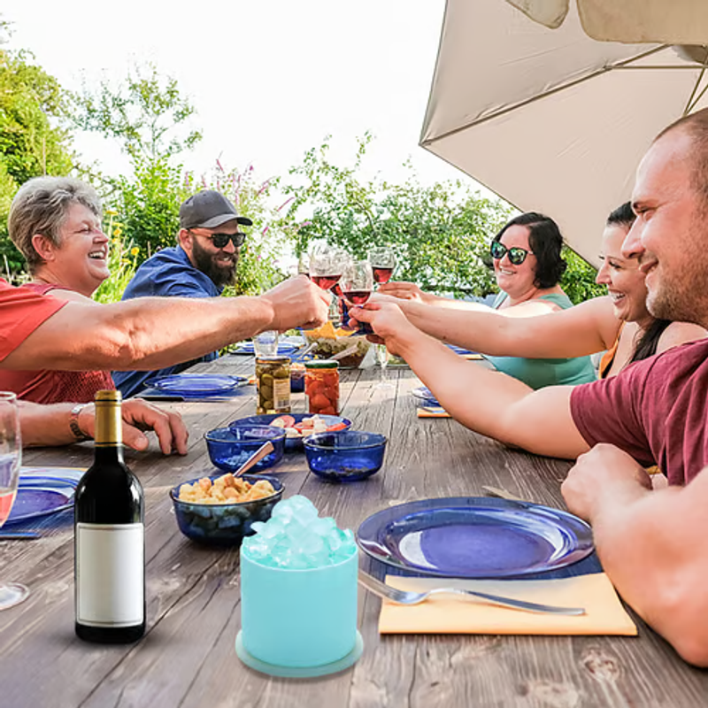 Easy to Take Ice: Simply squeeze and knead the ice cup for easy release ice cubes and inner cylinder, if add warm water in the middle grooves will demould instantly