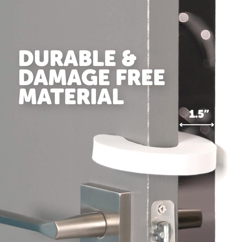 - THE WHITE COLOR AND SIMPLE DESIGN :Blends in and matches any style. Our child safety door stopper is a great way to baby proof and prevent painful injuries from jamming fingers and hands. Each pack comes with 6 pieces!