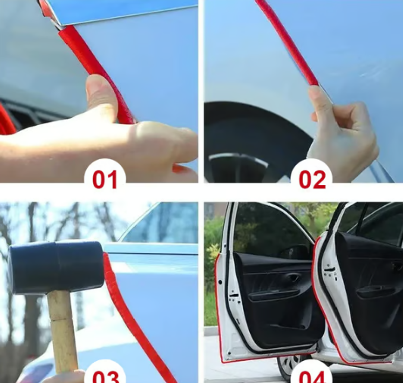 EASY INSTALLATION: Car door edge protector with 4 fixed panes, U-shaped design helps to fit tightly and will not damage your car edge paint. Simply press the rubber seal onto the edge of the car door. Glue-free keeps your door edge clean when you take it off. You can use scissors to cut off unused trim for other door edges.