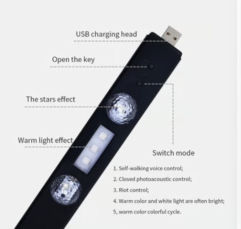 • Closed light control - the sound sensing rhythm flashes, no sound is not bright.
