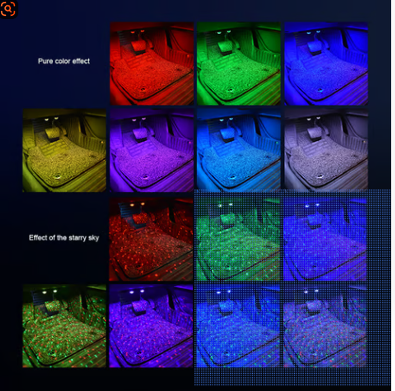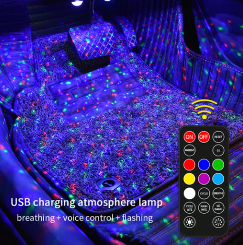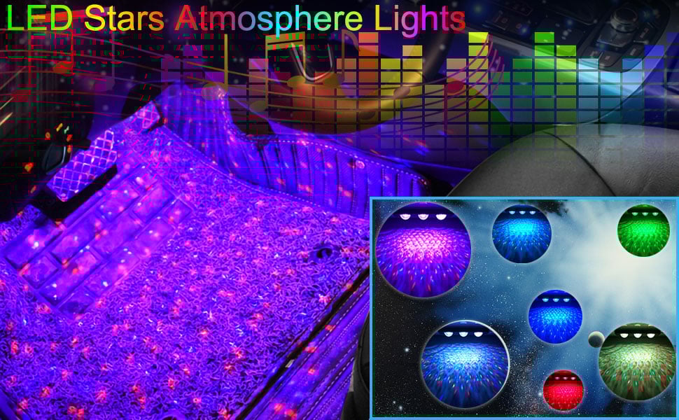 • 7colors - Red, blue, green, purple, red + green, red + blue, green + blue, Multi-color full stars neon accent lights for your car floor front & back row.