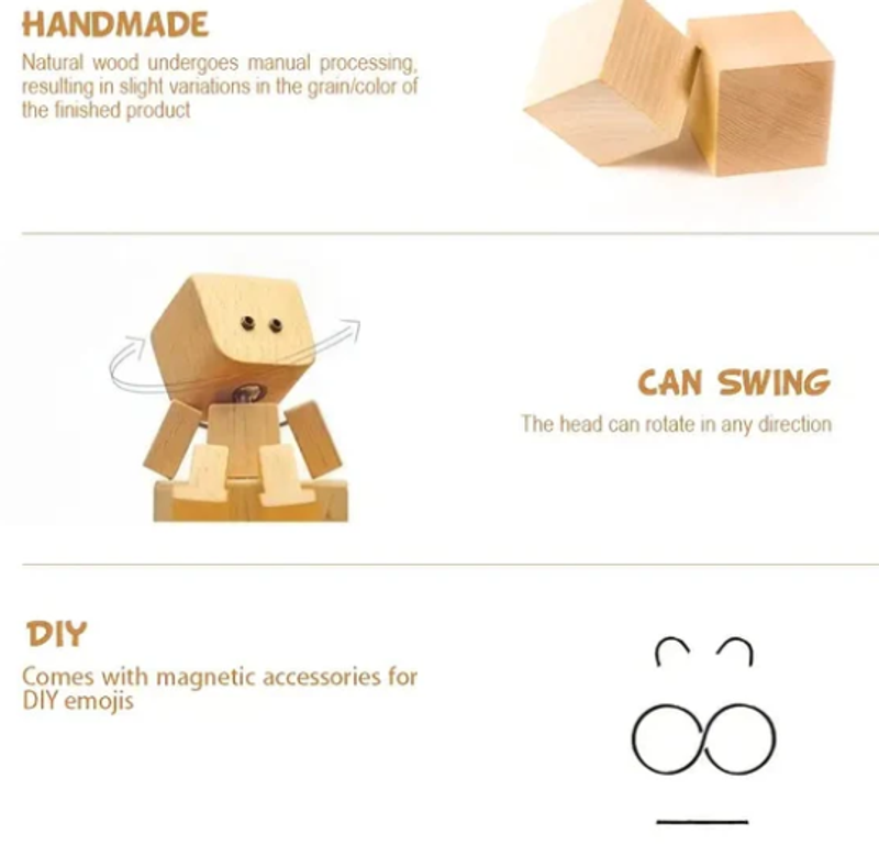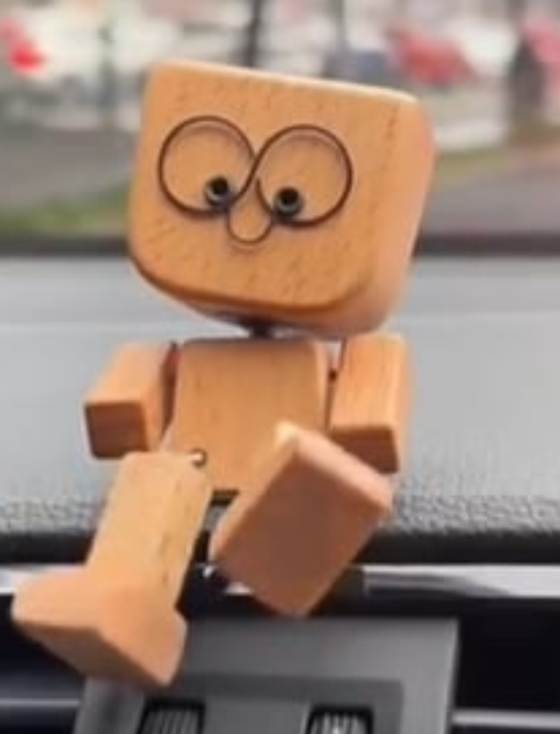 Artisan-Crafted Action Figure Man Car Ornaments: Each handmade wooden figurine is meticulously crafted from premium natural wood, featuring intricate detailing that enhances its charm as a bobblehead dashboard decor piece, perfect for any vehicle’s interior.
