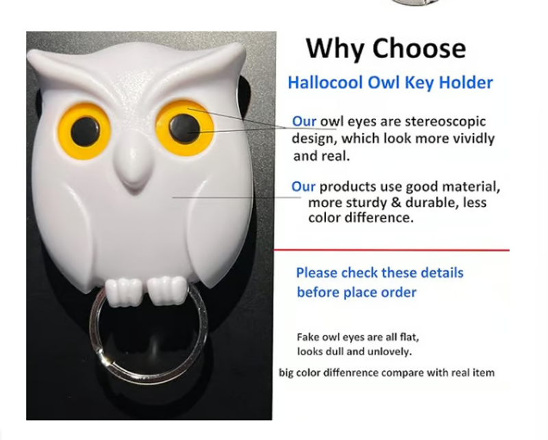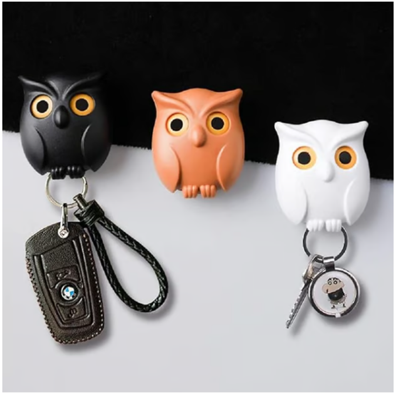 Cute and cool Owl Key Holders keep your keys organized and easier to find. Vivid night owl eyes will open eyes to protect your keys when you put keys under their claws, auto close eyes when take away your keys, very fun. The night owl key hooks can also be unique home wall decoration and unusual gift key holder for your family members, friends and colleagues