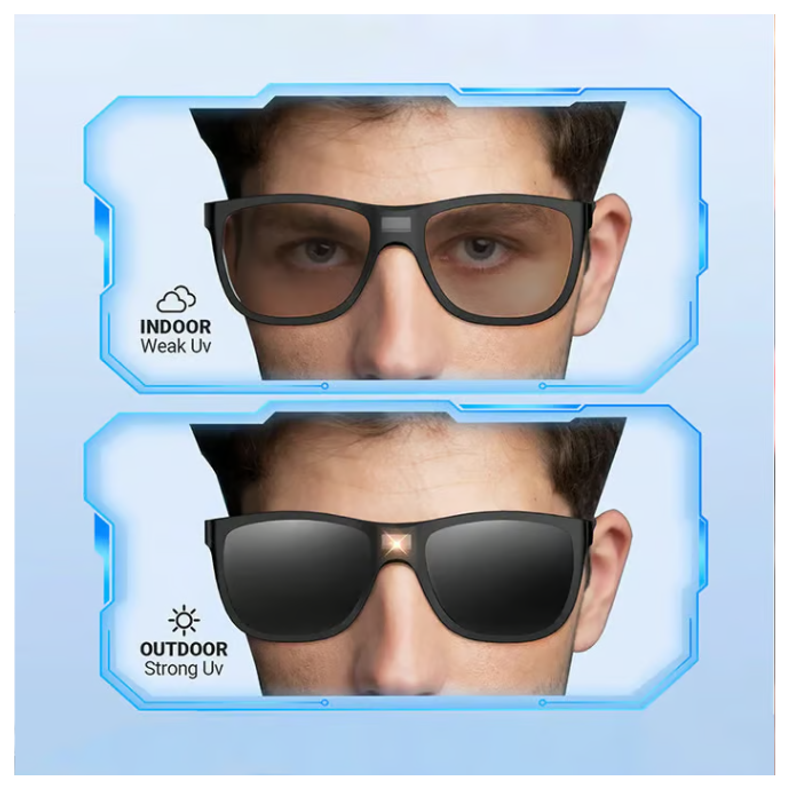 Package Includes: 1* Fashion Polarized Sunglasses with Light-Sensing Tech