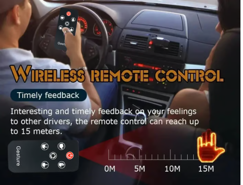 : Wireless remote lets you switch between different gestures and adjust brightness quickly and safely while driving.
