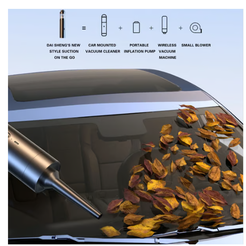 This versatile device combines four essential functions into one compact tool. Use it as a car vacuum cleaner to keep your vehicle spotless, a portable air pump for quick inflation, a wireless vacuum for convenient cleaning, and a mini blower to easily blow away debris like leaves and dust. Perfect for every need at home, on the go, or outdoors!