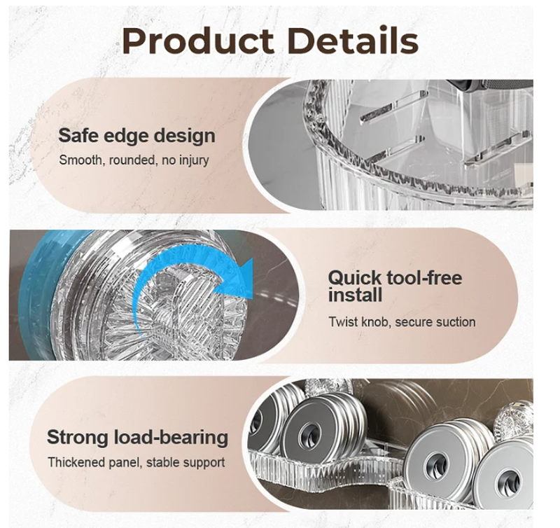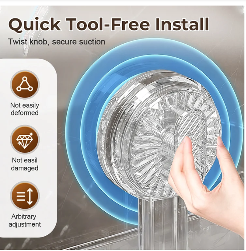 EASY TOOL-FREE INSTALLATION: Simply twist and tighten the knob to secure the suction cup firmly. The vacuum adhesion design ensures strong stability without damaging walls or surfaces. Multiple fine-polished edges make handling safe, avoiding scratches or hand injuries.