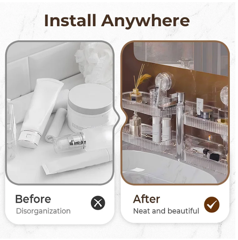 HYGIENIC DRAINAGE SYSTEM: Built-in drainage holes prevent water accumulation, ensuring stored items stay dry and sanitary. The waterproof and moisture-resistant design makes it ideal for bathrooms, kitchens, or laundry areas, providing hygienic storage for everyday essentials.