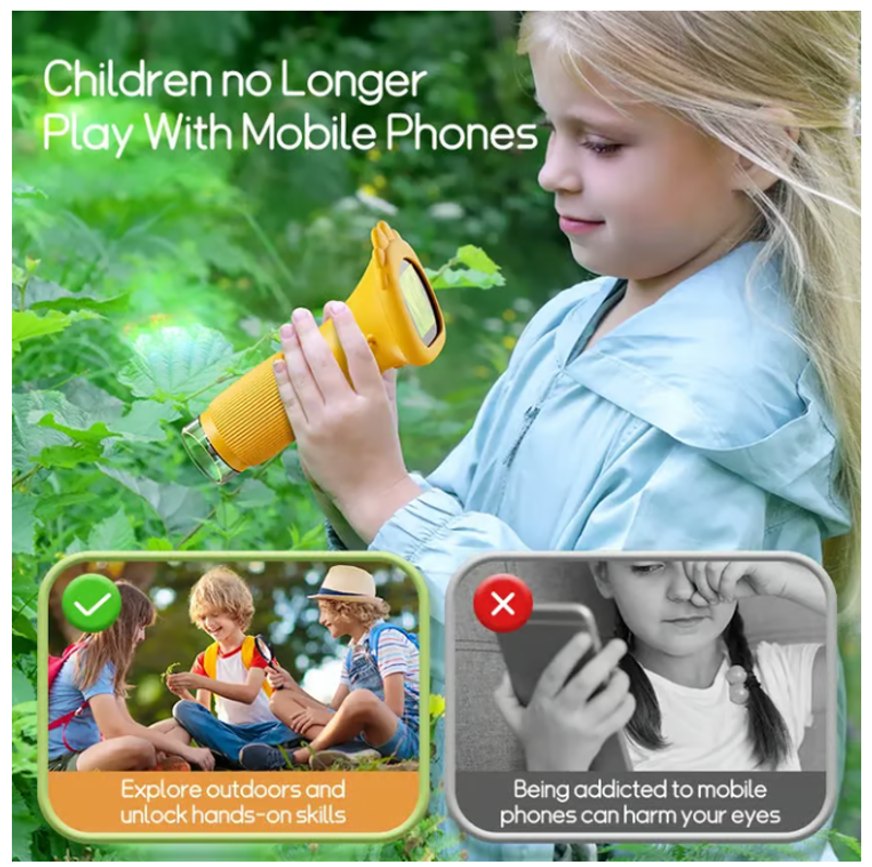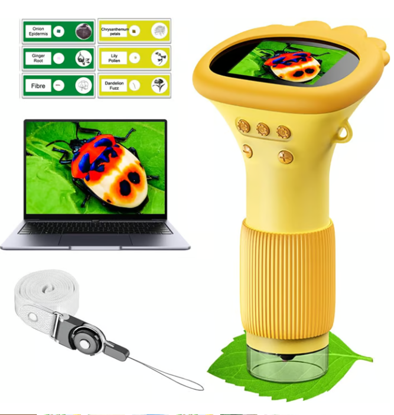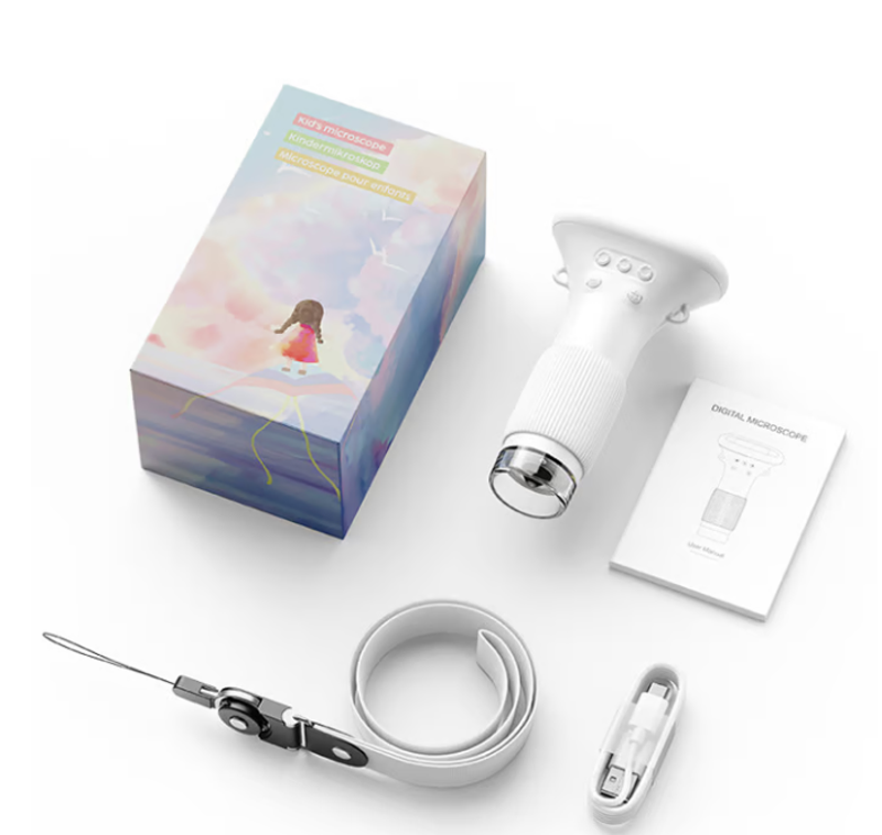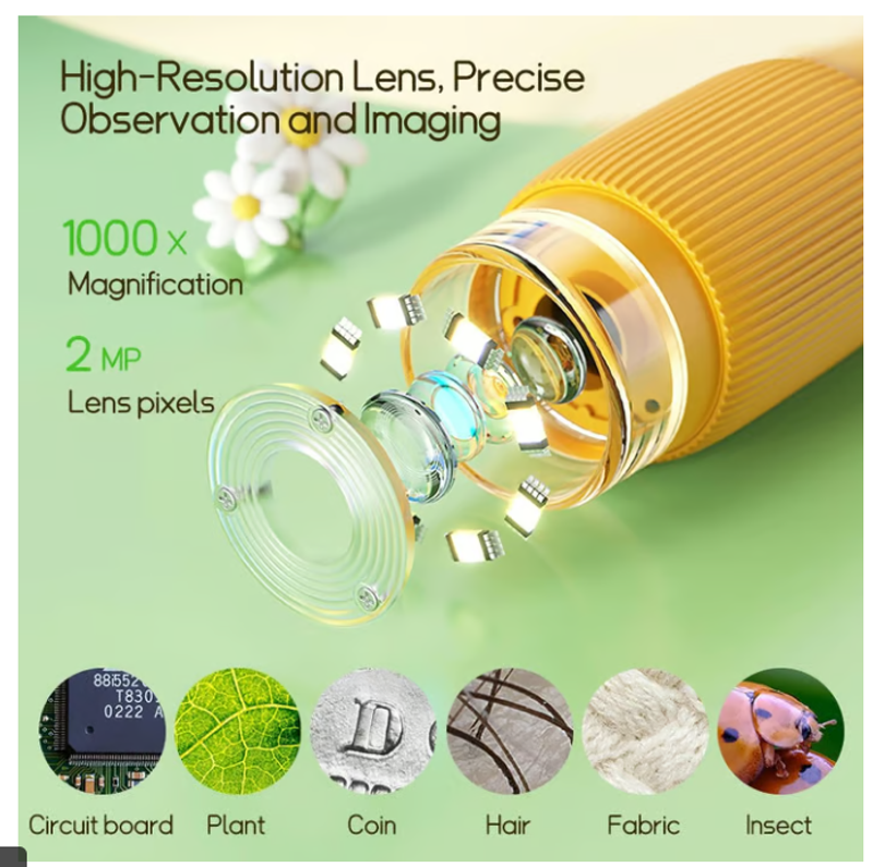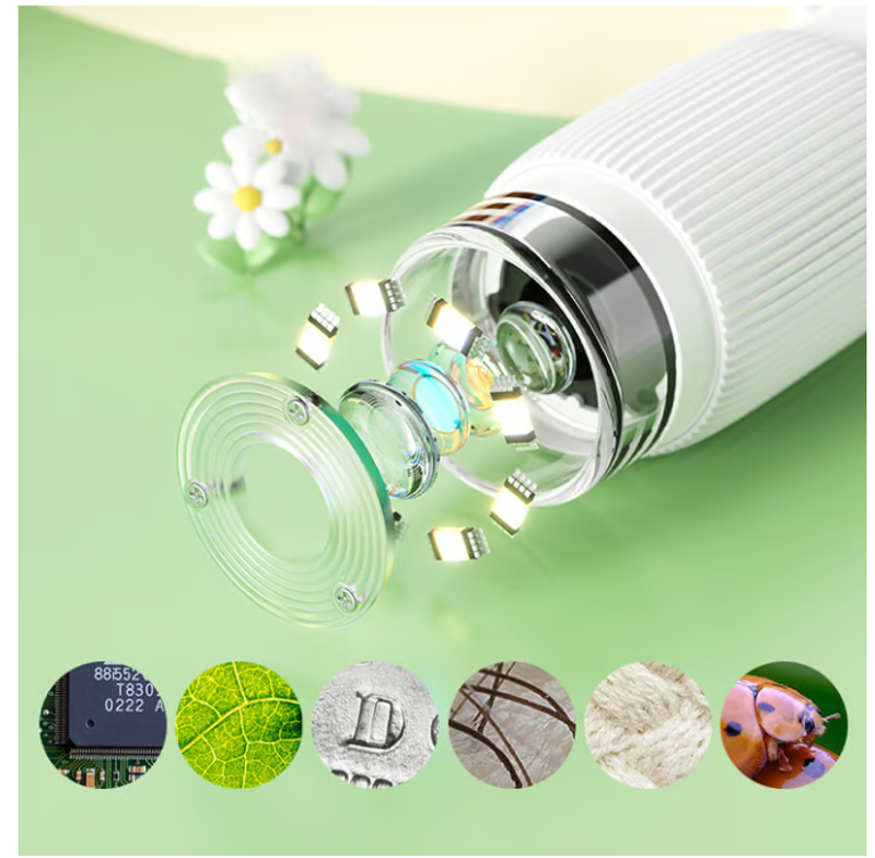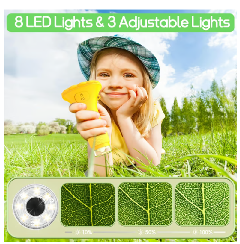 【Adjustable LED Lights】This children's microscope is equipped with eight LED lights designed to illuminate the subject. This feature ensures the production of clear, bright images and videos, maintaining optimal visibility even in low-light conditions.