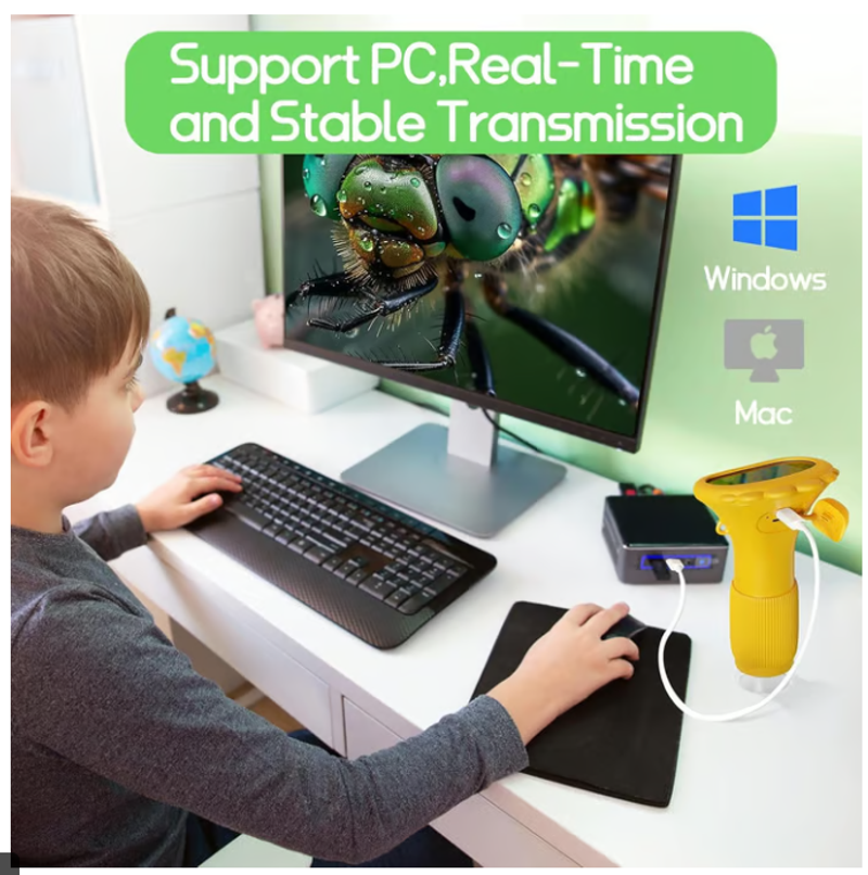 【Computer Connectivity】Connect to a PC via USB cable for a broader field of view. Observe specimens more clearly and facilitate shared exploration. When children see the microscopic world under the microscope, they will love this microscope kit and increase their interest in nature.