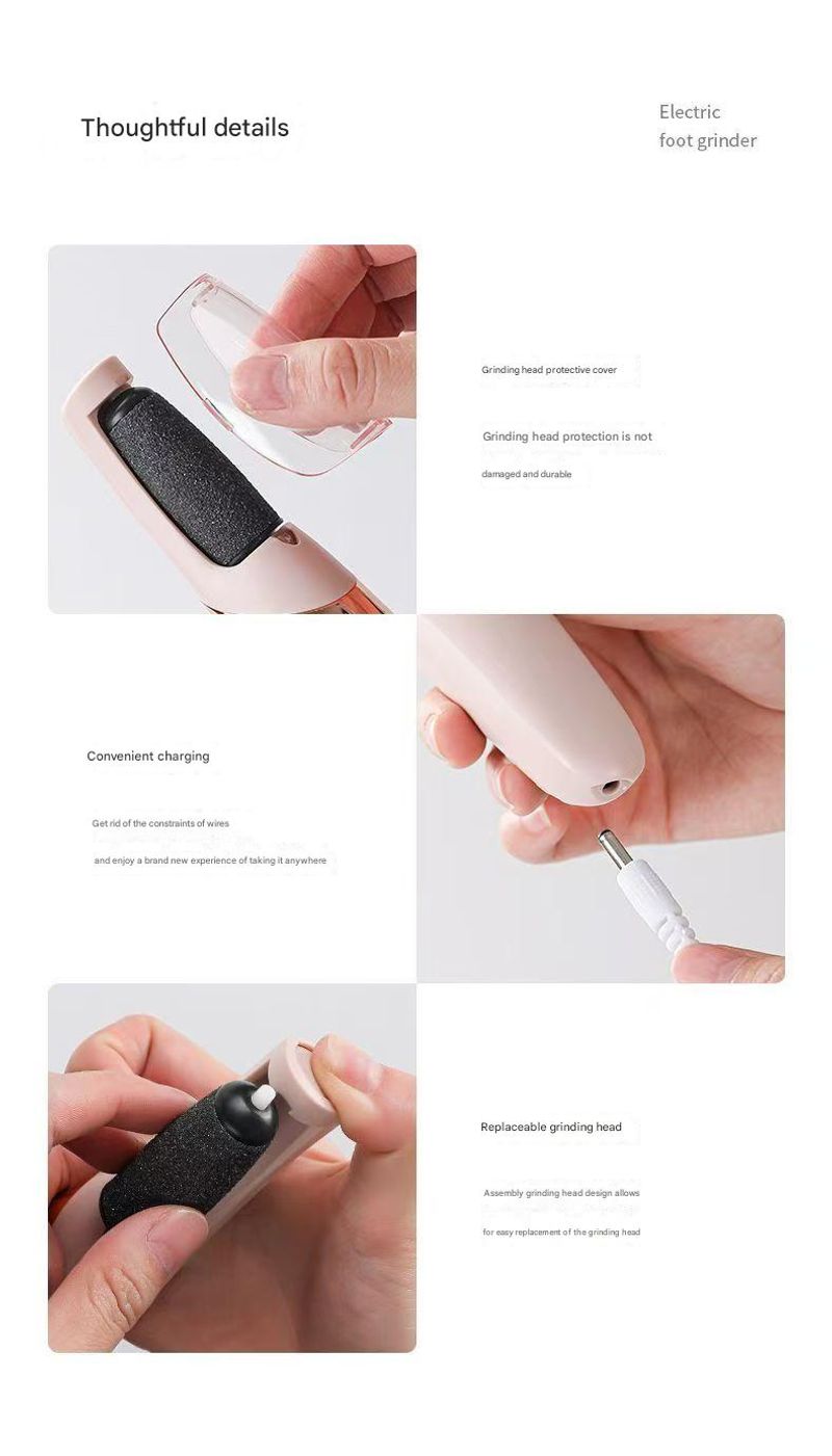 The grinding head can be removed and rinsed with clean water to make it as clean as new. No more worrying about dead skin residue and bacterial growth, zero-effort cleaning!