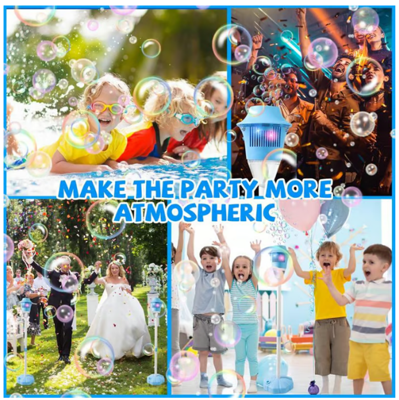 •Adjustable Height Stand: The bubble maker comes with an adjustable stand, making it suitable for children of all ages. Easily adjust the height to ensure every child, big or small, can enjoy the bubble-blasting fun.