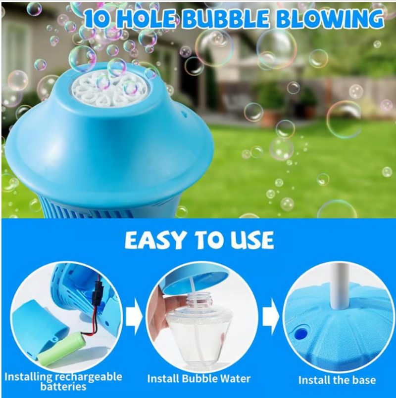 •Portable and Lightweight: The bubble maker is designed to be lightweight and easy to carry, making it perfect for outdoor use at parks, beach trips, or family outings. It’s also easy to store when not in use.