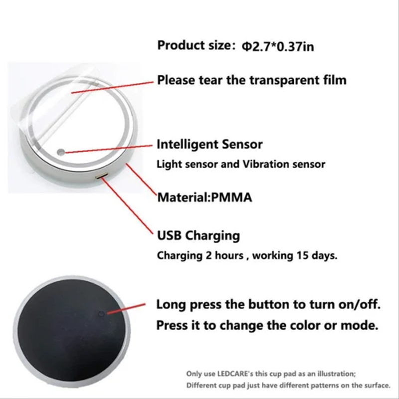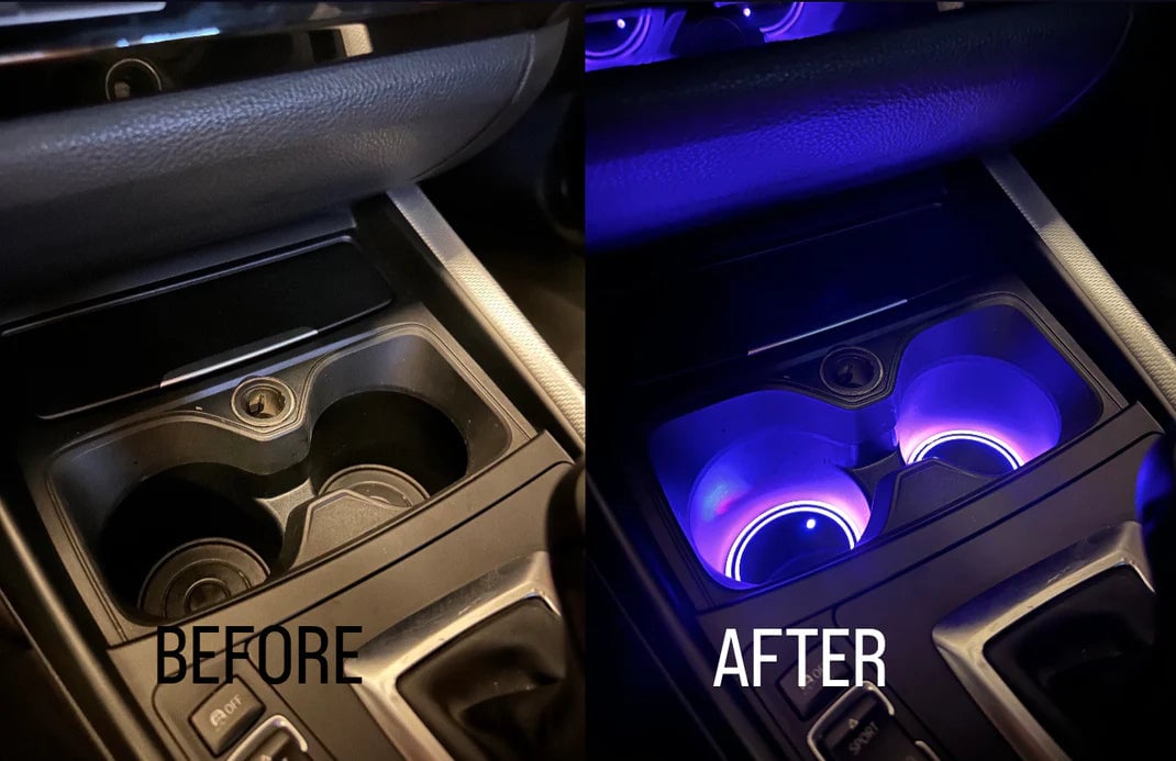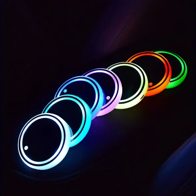 Transform your car's interior with the LuminousDrive LED Car Coaster Duo, which brings dazzling, radiant light to your cup holders