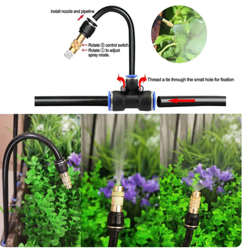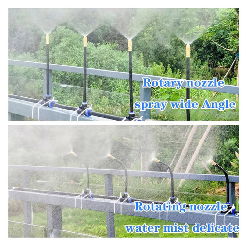 Whether you want to place it on the ground, fix it on a fence, or hang it on a sky flower bed, it provides great flexibility. It can be used in various occasions, such as courtyards, lawns, roof cooling systems, agriculture, swimming pool spray cooling systems, greenhouses, garden plant watering, etc.