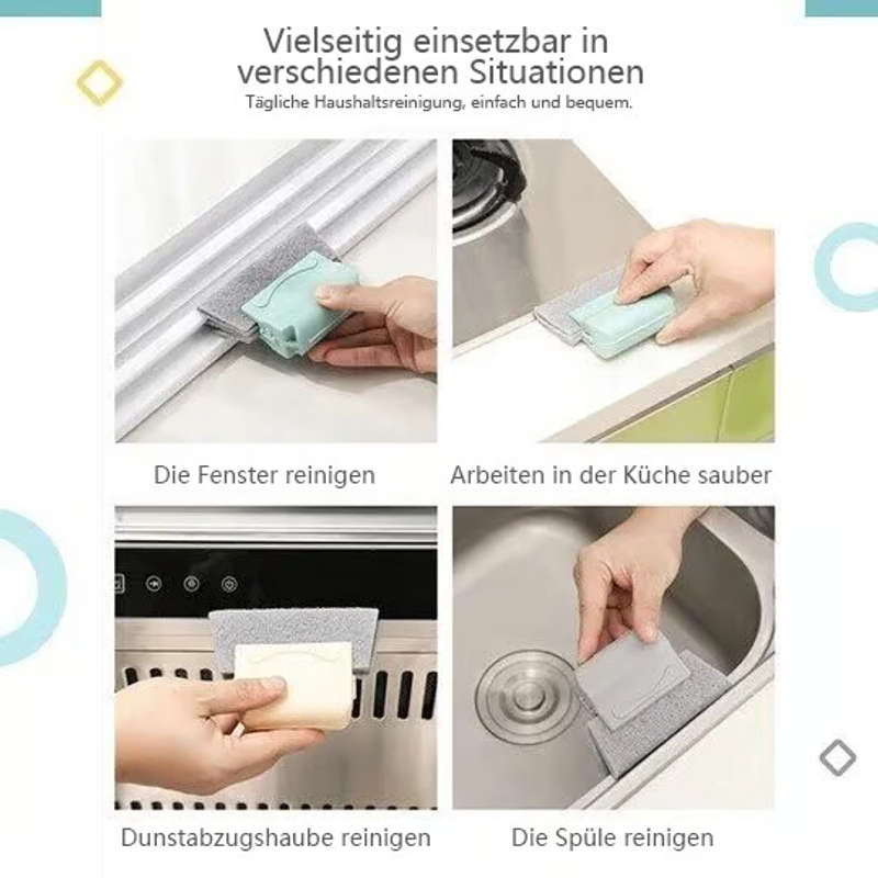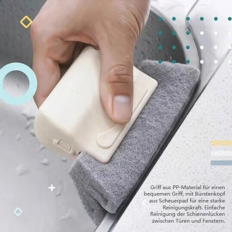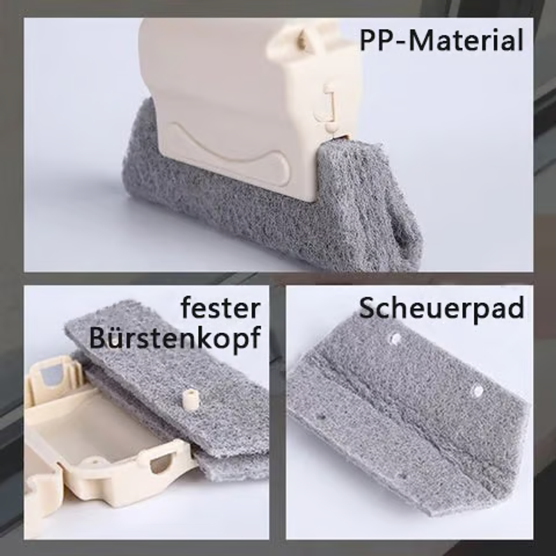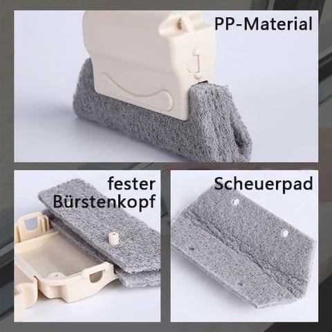 PP material handle, comfortable grip, scouring sponge material with fixed brush head design, good cleaning power, can easily and effortlessly clean door and window guides and gaps, etc.