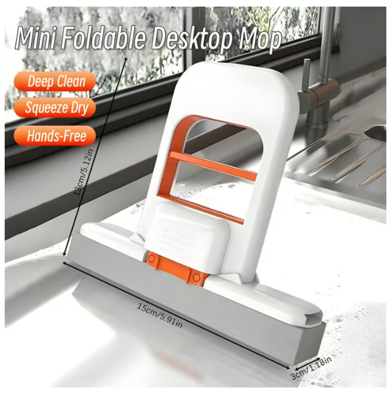 Tired of bulky mops that are hard to store and even harder to use? 😩 Say hello to the Mini Foldable Desktop Mop – your new best friend for quick and easy cleanups! 🎉
