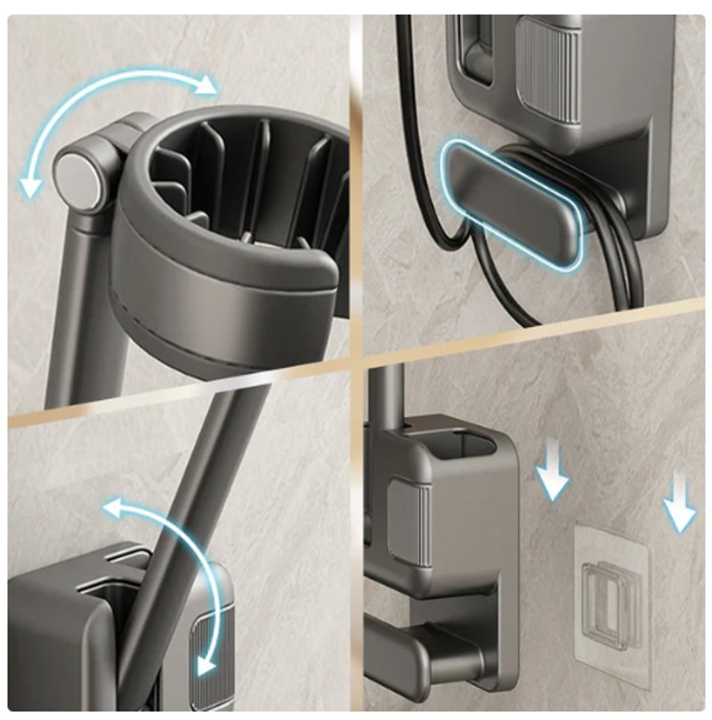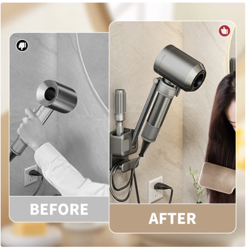 SECURE AND STEADY: Made from thickened, durable materials, this wall mount offers superior stability. Its strong load-bearing capacity ensures your hair dryer is securely held in place, providing lasting reliability and support for everyday use.