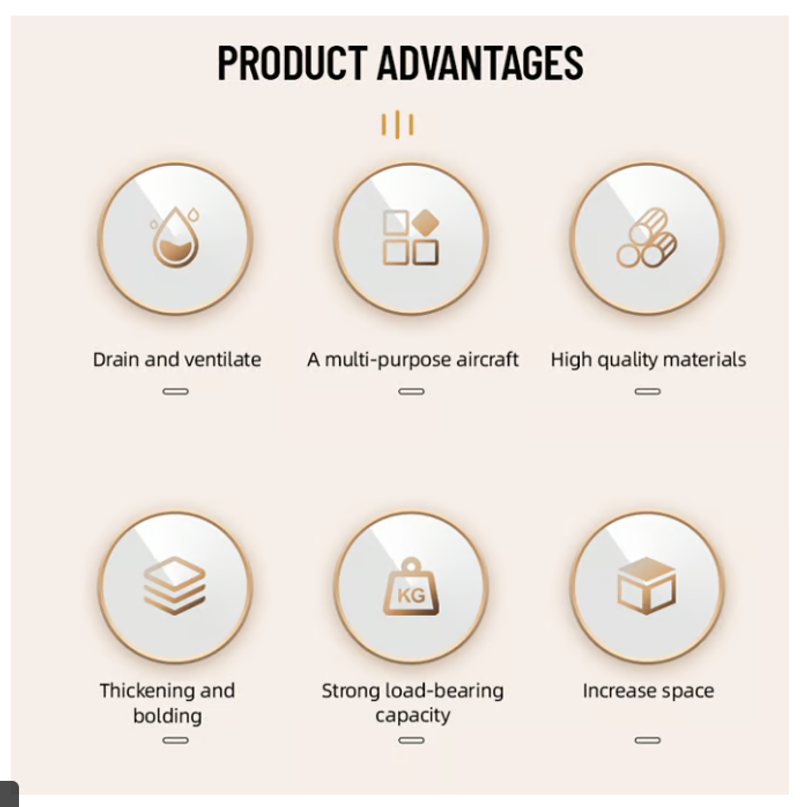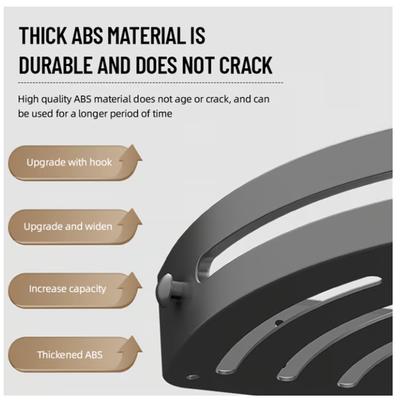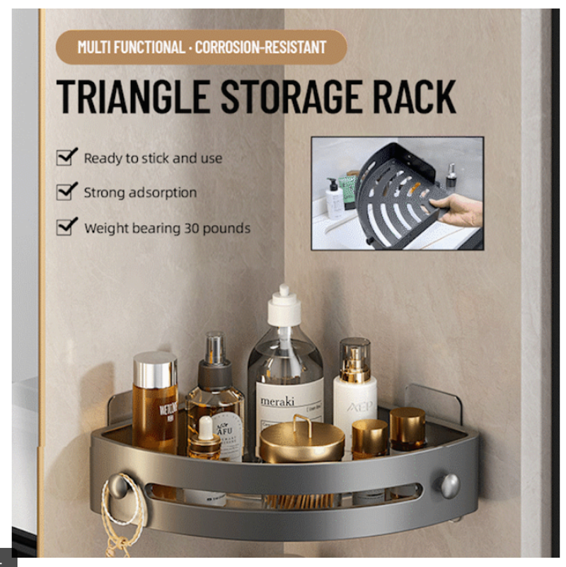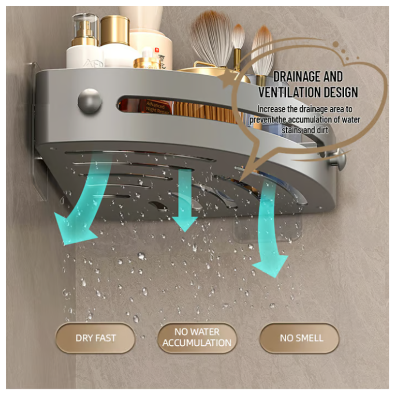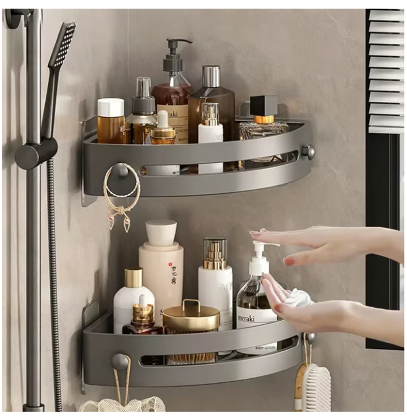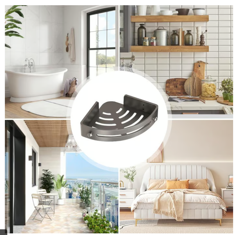 【Multi-scenario Application】Our corner shower shelf can not only store bathroom items in the shower or above the washstand. Furthermore, it can also be the spice rack for organizing various spices in the kitchen, the sink caddy for holding kitchen cleaning products above the sink, and the hanging shelf for storage in the living room.