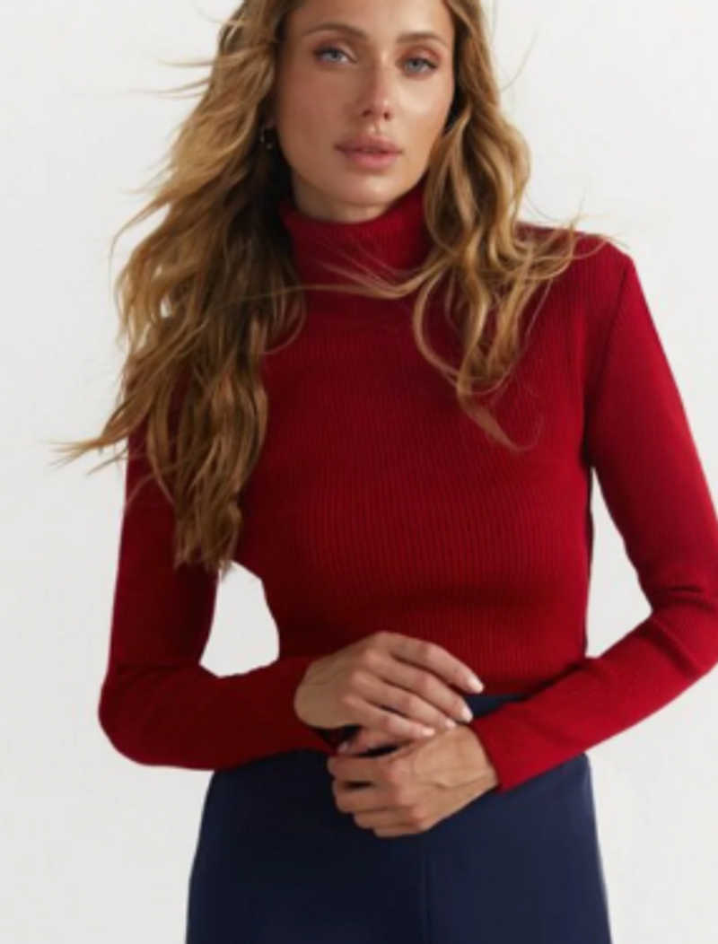 Stay warm and stylish with this sleek Maroon Rib Knit Turtleneck, a wardrobe essential for any season.