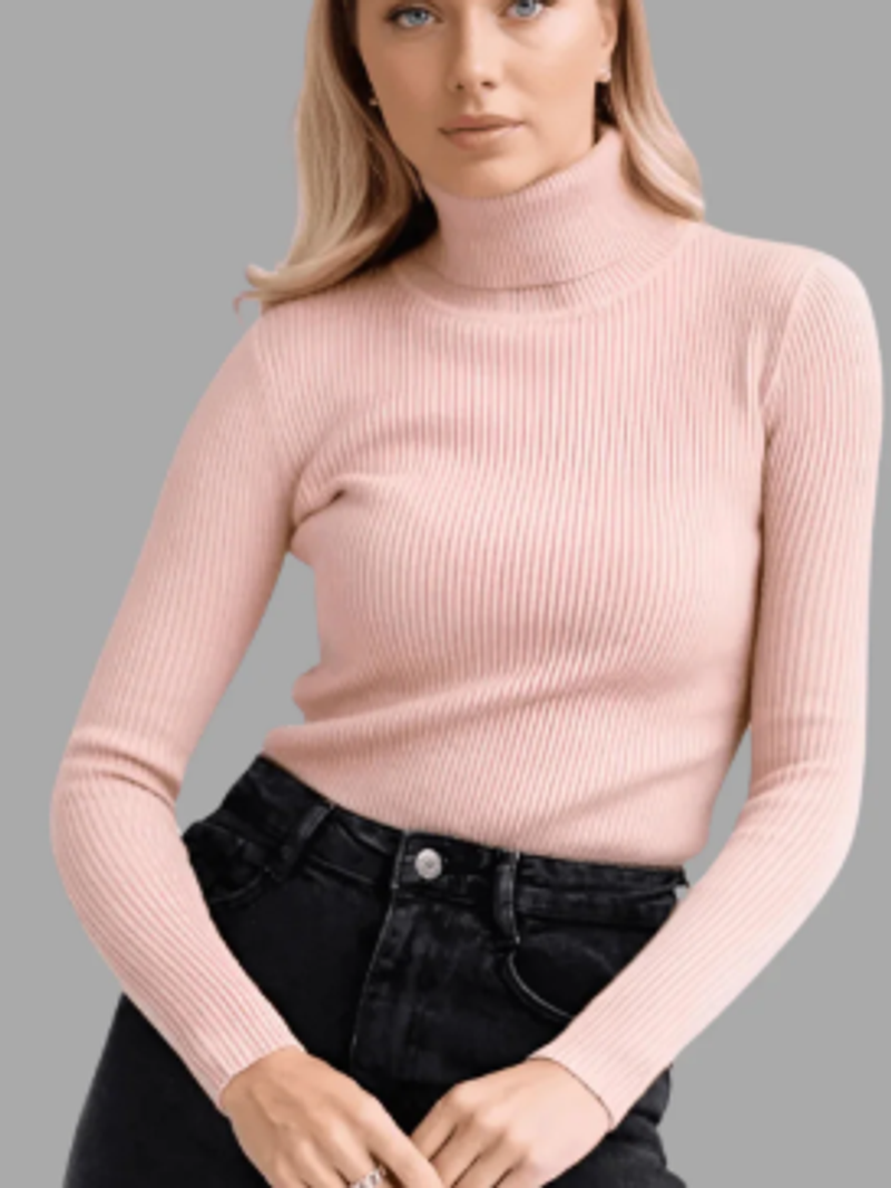 Crafted from a soft, stretchy ribbed knit fabric, this turtleneck offers a snug yet comfortable fit that flatters your silhouette.
