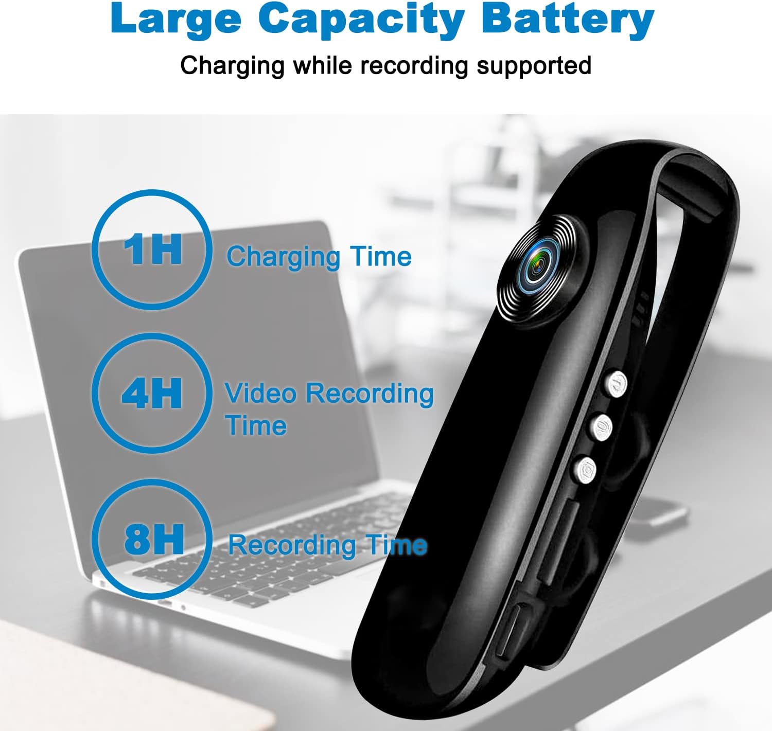 This body camera has a built-in clip that can be easily clipped to bag/backpack, etc. to carry it with you anywhere you go. Using Clip design with powerful magnet, attract it on iron shelves/refrigerators/furniture.