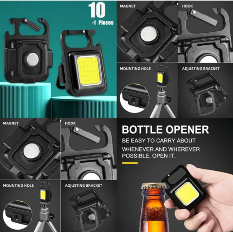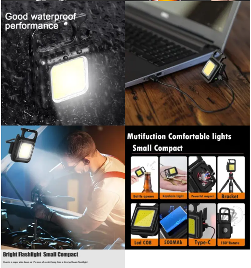 Mini Portable Pocket USB Rechargeable Flashlight COB Work Light LED Keychains Outdoor Emergency Camping Corkscrew Fishing
