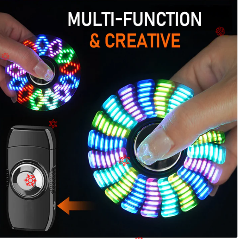 CREATIVE DESIGN: A versatile tool that blends everyday utility with engaging interaction. This lighter includes a freely spinning mechanism for tactile stimulation and a dynamic LED interface that offers various lighting options. It delivers both interactive enjoyment and practical light functionality in a portable format.